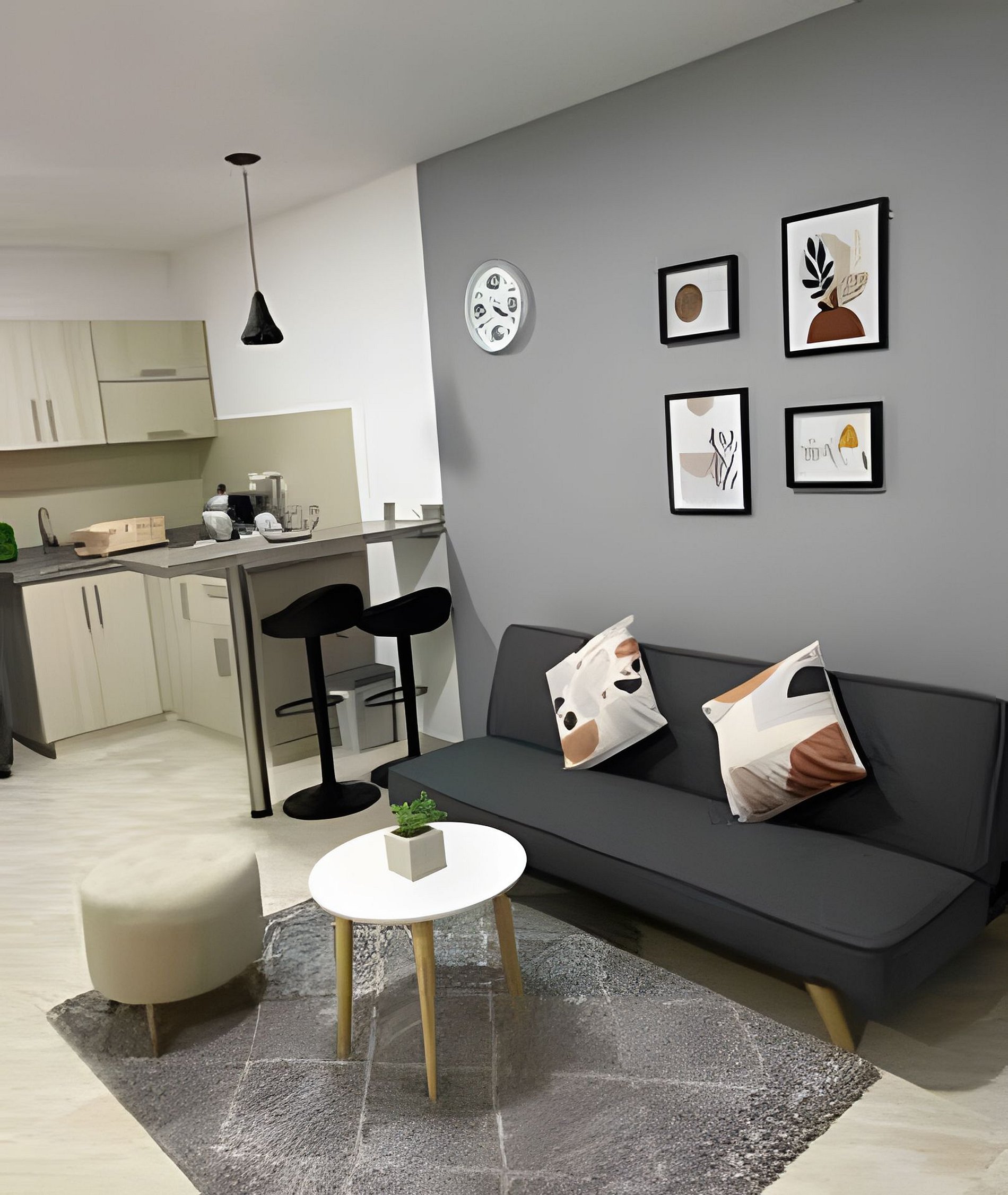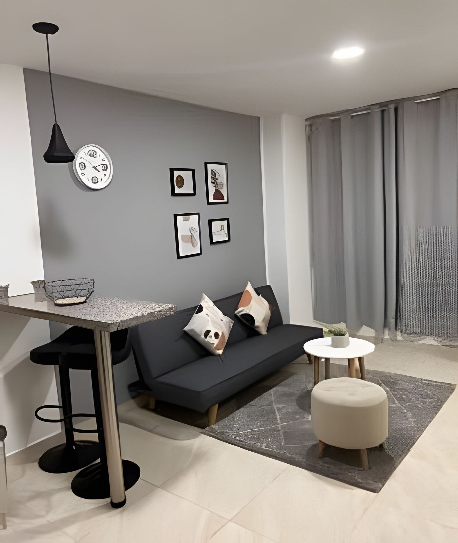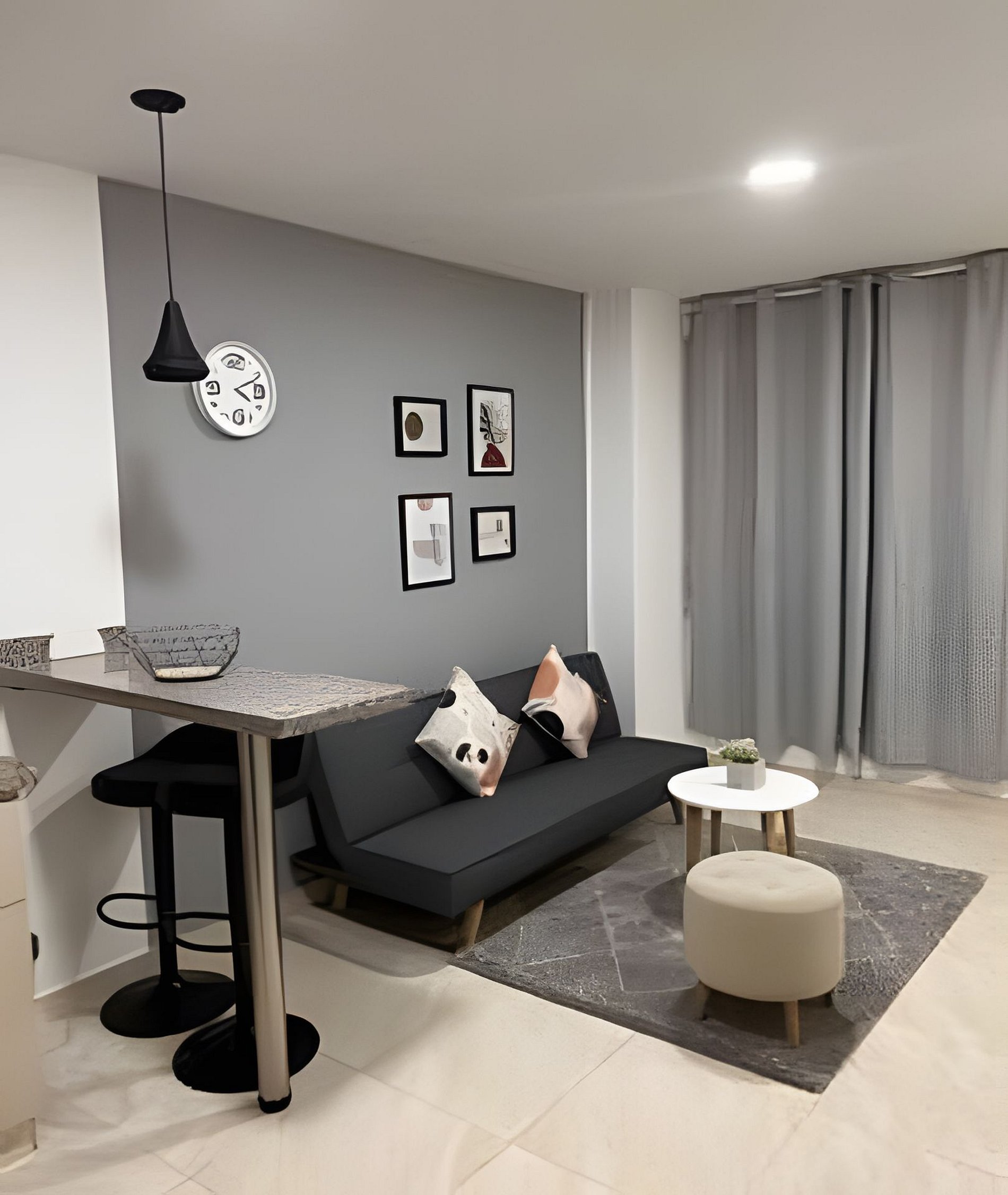 Es un aparta estudio de aproximadamente 48 metros cuadrados donde encontrarás sala, cocina, habitación y baño de manera independiente, muy bien distribuido.